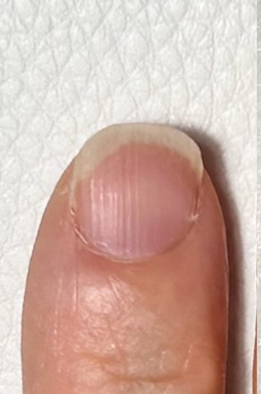 ピンクの部分が縦に長い爪を